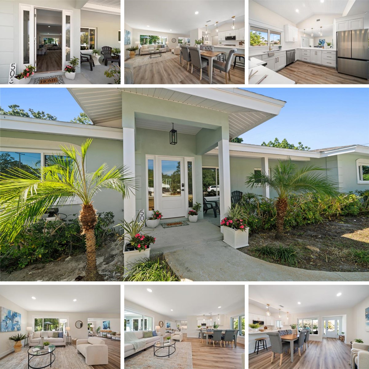 Welcome to this stunning, fully renovated, move-in ready home in the heart of beautiful Belleair, where timeless charm meets modern sophistication. The open and bright floor plan is enhanced by gorgeous luxury vinyl plank flooring that flows seamlessly throughout the living spaces. At the heart of the home, the brand-new white kitchen impresses with custom cabinetry, a classic subway tile backsplash, stainless steel appliances, and ample counter space for the home chef. The kitchen opens gracefully to the formal dining and living rooms, creating an inviting setting perfect for gatherings and easy entertaining. A desirable family room offers additional living space and overlooks the private backyard and oversized deck—an ideal retreat for relaxing or hosting outdoor get-togethers. The split floor plan includes a luxurious primary suite featuring stylish barn door access to a beautifully renovated ensuite bath complete with a walk-in shower, double sink vanity, and modern finishes. The additional bedrooms are equally well-appointed, offering comfort and versatility, and share a renovated hall bathroom. Every detail of this home has been thoughtfully updated for peace of mind and effortless living—new roof, new AC, new impact windows and sliders throughout, new appliances, new interior doors, and freshly painted inside and out. Blending quality craftsmanship with modern design, this Belleair beauty is truly move-in ready and perfectly positioned near world-class golf, fine dining, boutique shopping, and the area’s famed beaches—an exceptional opportunity to live in one of Pinellas County’s most desirable communities.